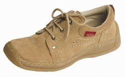 Wierzchy: skóra naturalna welurowa, miękki kołnierz, podszewka z tkaniny obuwniczej o wysokich parametrach higienicznych.
