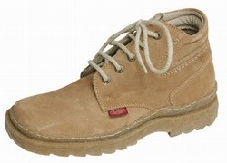 Wierzchy: skóra naturalna welurowa, miękki kołnierz, podszewka z tkaniny obuwniczej o wysokich parametrach higienicznych lub z dzianiny futerkowej.